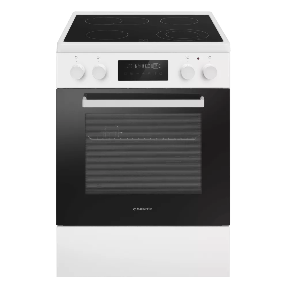 Электрическая стеклокерамическая плита MAUNFELD MEC611CW09TD — практичное решение для тех, кто хочет получить полноценную духовку и удобную стеклокерамическую поверхность в едином корпусе. Модель сочетает лаконичный белый дизайн и продуманную эргономику: понятные переключатели, дисплей и электронный таймер помогают легко контролировать процесс готовки.