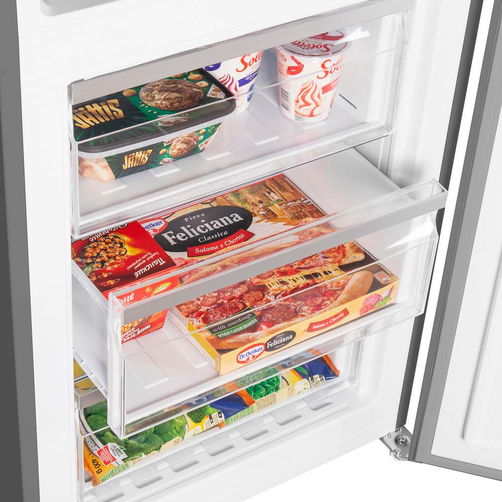 Холодильник NO FROST MAUNFELD MFF200NFSE — выбор для тех, кому важно стабильное охлаждение и удобная организация пространства. Система Total NoFrost исключает образование наледи в холодильном и морозильном отделениях, упрощая уход и поддерживая эффективный теплообмен.