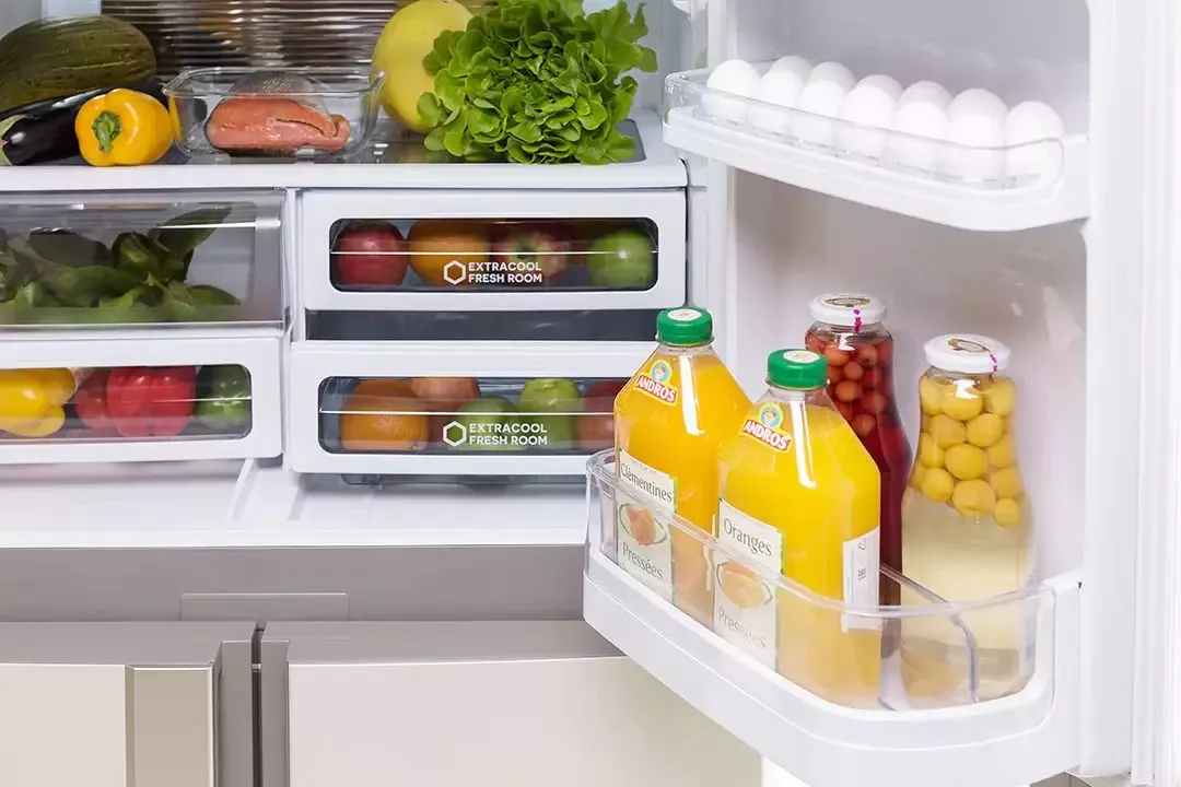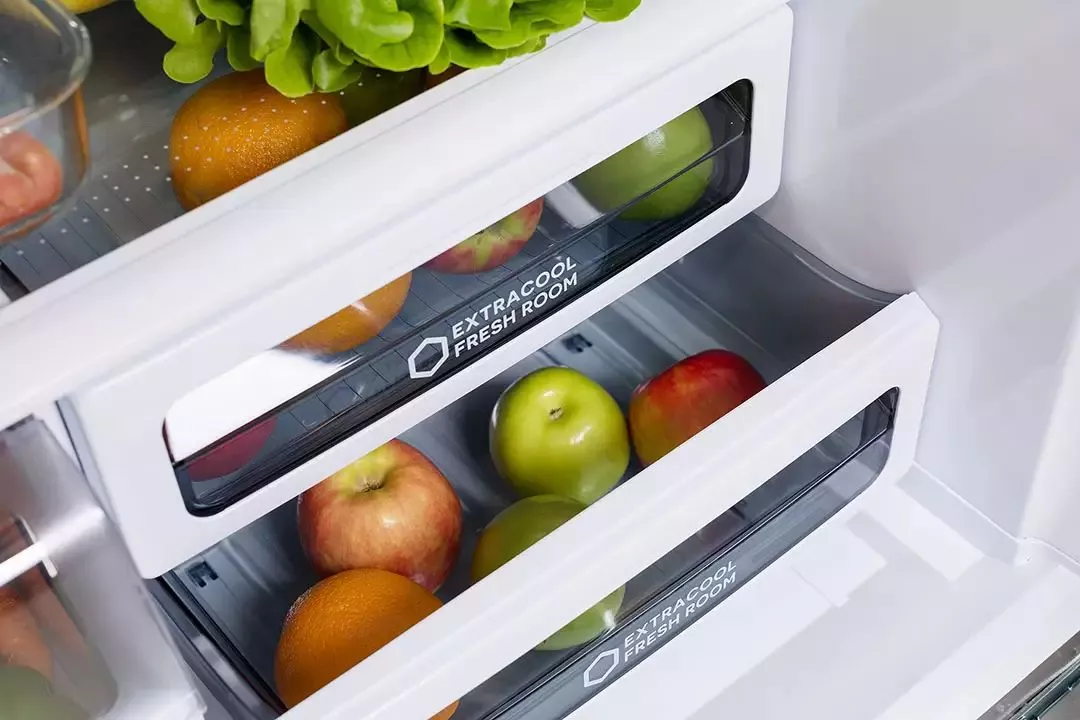 Модель впечатляет вместительностью: полезный объём 605 л рассчитан на крупные семейные закупки и удобную организацию пространства. Отсутствие центральной перегородки в холодильной камере и широкие стеклянные полки делают размещение продуктов максимально удобным.