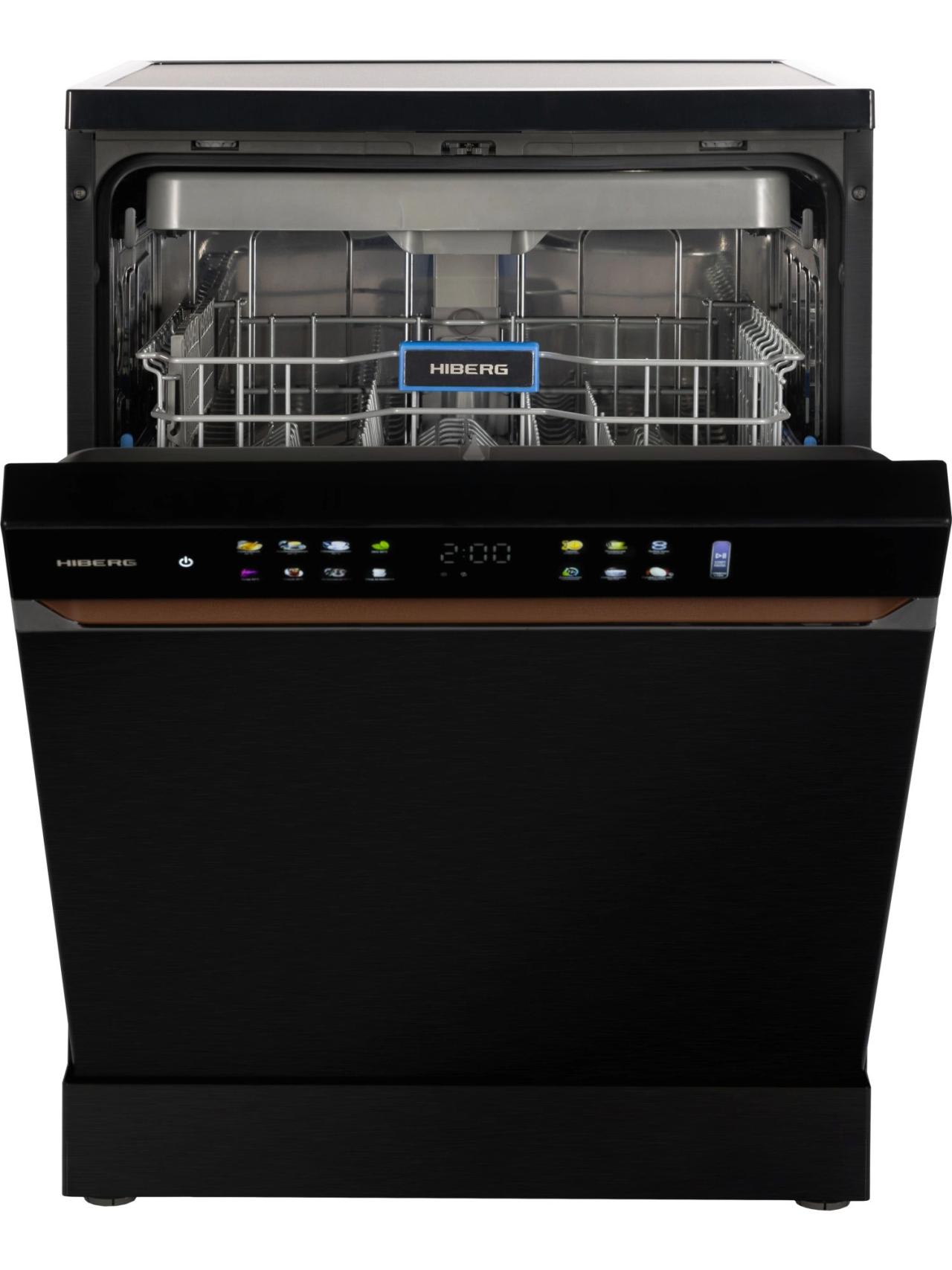 Для комфорта предусмотрены выбор зоны мытья (в одной корзине), таймер отсрочки, цветная сенсорная панель с большим дисплеем. Премиальный дизайн подчеркнут стильными кожаными вставками и единой стилистикой со стиральной машиной HIBERG I-DDQ10-814 B. За безопасность отвечают полная защита от протечек AquaStop и блокировка от детей. Гарантия — 2 года.