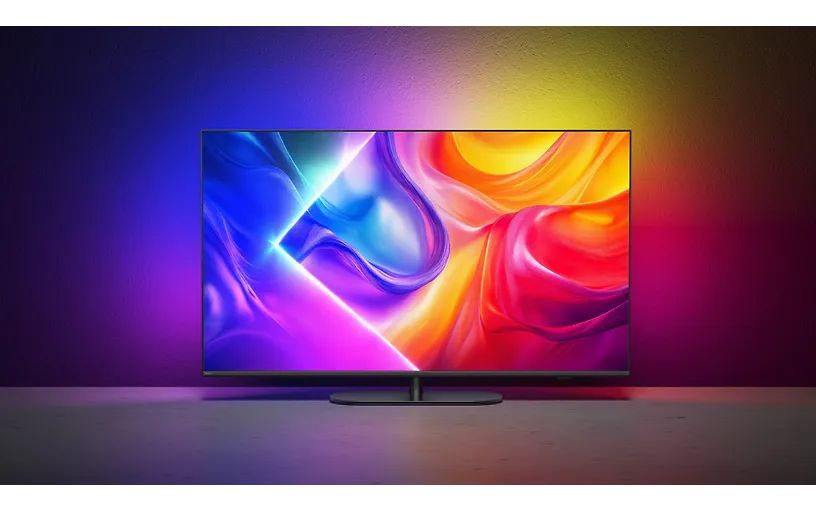 Система обработки изображения Philips P5 и экран 4K QLED обеспечивают высокую чёткость и насыщенные цвета. Благодаря технологиям Dolby Vision и Dolby Atmos каждая сцена выглядит с кинематографической точностью. А технология Ambilight усиливает эффект погружения: встроенные LED-огни реагируют на происходящее на экране и создают цветное сияние вокруг телевизора.