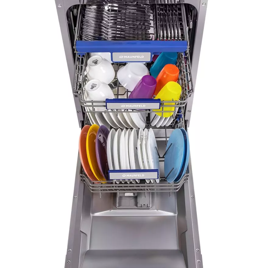 Узкая встраиваемая посудомоечная машина шириной 45 см. Благодаря использованию специально разработанных корзин и дополнительного выдвижного лотка для столовых приборов позволяет вымыть 10 комплектов посуды. Внутренняя поверхность выполнена из нержавеющей стали толщиной 0.6-0.8 мм, что обеспечит долгий срок службы при активном использовании.