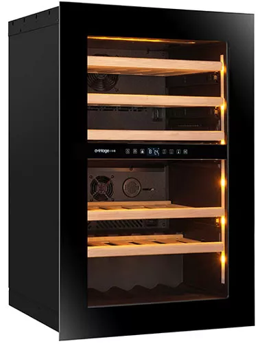 Позволяют задать нужную температуру для хранения вина разных видов. Разделение общего пространства на две зоны обеспечивает сохранность вкусовых качеств напитков. Общая рабочая температура — от 5°С до 20°С.